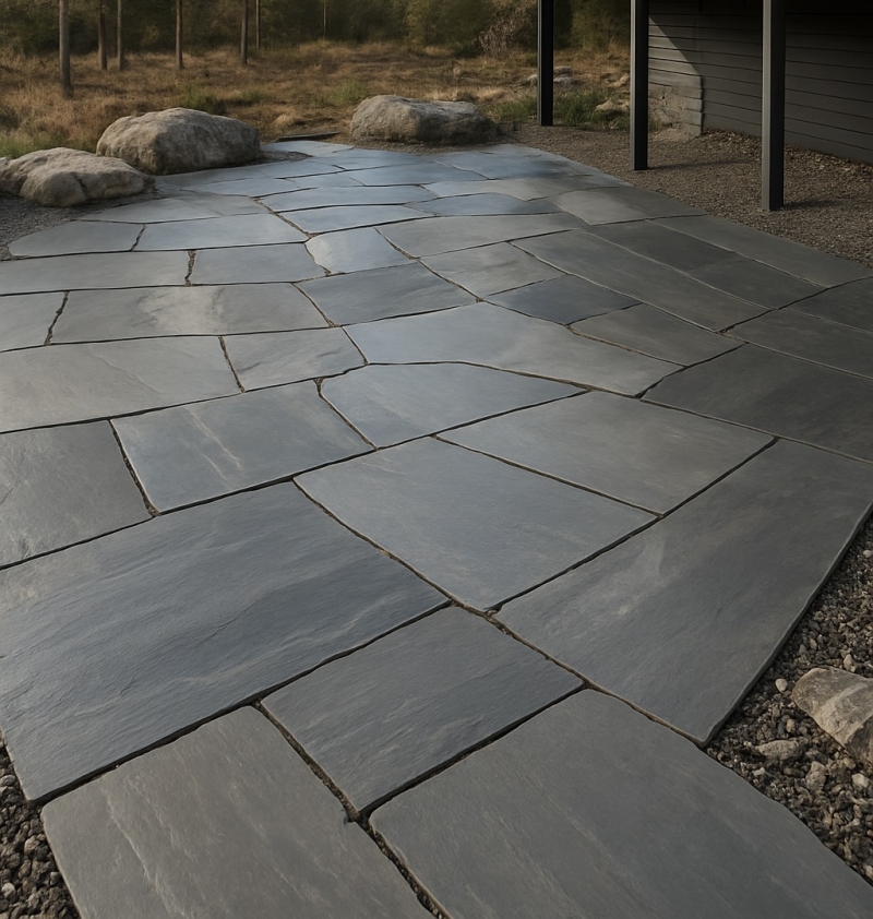 - Formbarhet: Skiferen er lett å forme, risse og kan knekkes for å oppnå en tilnærmet vinkelrett rustikk kant.